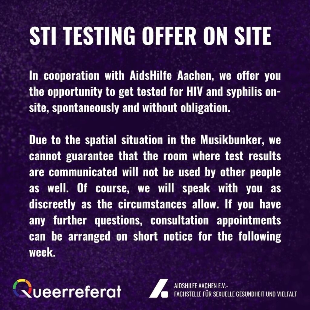 In cooperation with @aidshilfeaachen, we offer you the opportunity to get easily and spontaniously tested for HIV and syphilis.